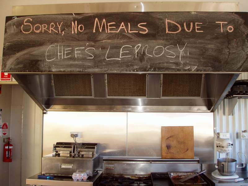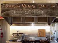 מנהלים מסעדה בלי רישיון מסעדה ולכן הם הפסיקו להכין ארוחות ובתור בדיחה על הלוח בו פעם היו
