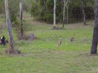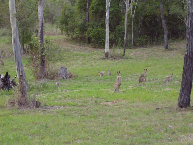 פגרים של קנגרואים שכנראה קפצו לכביש בדיוק כשמוכנית עברה כי הם מרוחים על צידי הכביש. וואלאבי הוא