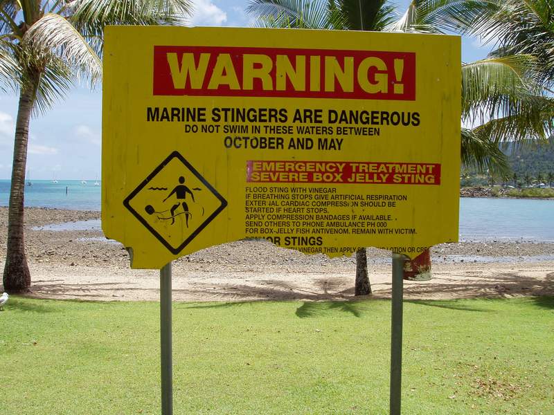 שלטי אזהרה מפני מדוזות. לא להכנס למים!