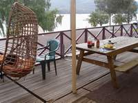 גדולה עם שולחן וערסל שצופה על אגם טיאנו השלו וההרים היפייפיים שמסביב. תענוג!.