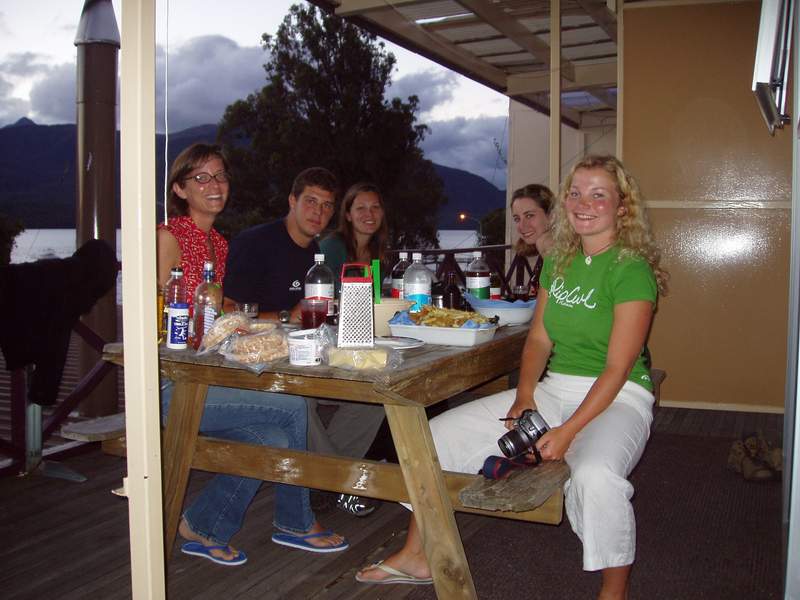 אמריקני מבוגר וזוג גרמניות. טוב, מישהו צריך ללמד את האוסטרלי הזה מה זה אוכל... והקנדית חמודה...