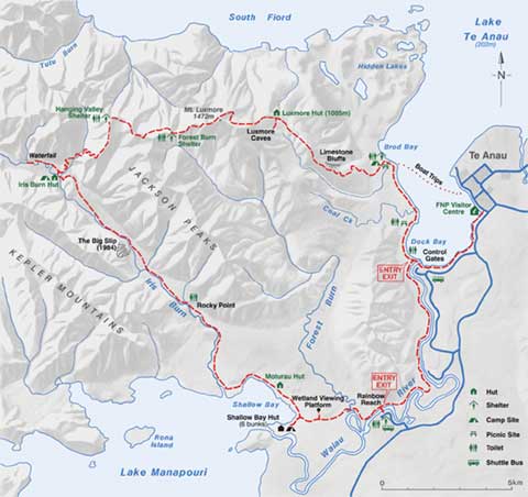 6 ק"מ ולצאת מהטרק לאיזור שנקרא Rainbow Reach וממנו ניתן לתפוס אוטובוס לטיאנו, או טרמפ כמובן.