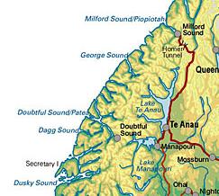 אנגלית, אז השמות הללו הם שמות מאורים כמובן.באיזור פיורדלנד ישנם הרבה פיורדים, אך לרובם
