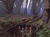 בסרט, כדוגמאת סצינת: "Get Off The Road!", כאשר ההוביטים נמצאים ביער בסרט הראשון. מי